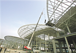 國博中心鋼結構屋面21萬平方米,一個“花瓣”的用鋼重量達到1800多噸。三局項目部介紹,大量鋼結構焊接需要在空中完成,既要保持弧線造型,又要對接平順,全靠“三維定位”的準確。項目部投入十幾部全站儀“密集”定位,保證精準。